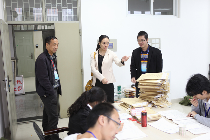 10月27日,四川省教育考试院杨雅娟科长一行3人对36365官网本次评卷工作进行了检查与指导。检查过程中,杨科长一行对36365官网评卷工作的组织安排、现场管理、安全保密及后勤保障等工作给予了充分的肯定,并对参加评卷的全体工作人员表示慰问和感谢。