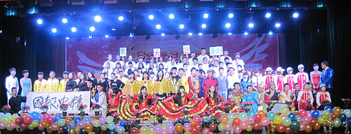 晚会在铿锵有力的《精忠报国》音乐声中拉开序幕。激情奔放的《西班牙之火》、浪漫温馨的《华尔兹串烧》、彰显年轻人蓬勃生命力的《青春舞蹈组合》……,优美的弦律,欢快的舞步,将全校师生带进一个欢快的世界。反映校园生活的《新老学生》和古为今用的《现代三国》小品,让师生们在笑声中悟出人生的哲理;情景组合唱《父亲》,以其真情的演绎,令不少观众动容;诗朗诵《师恩难忘》,表达了即将离校的毕业生对母校的感恩和难舍之情;莅临晚会现场的原南京军区战旗文工团演员、省社科院教育培训中心艺术团团长王丹老师倾情演唱的《想起老妈妈》、《我爱你中国》,赢得了全场经久不息的掌声。整个演出现场激情四射,高潮迭起,让人目不遐接,回味无穷。晚会在寓意深刻的《明天会更好》大合唱中落下帷幕。