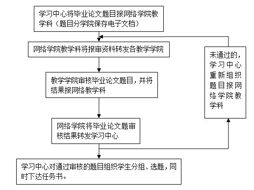 | 3 | 审核题目 | | 校外学习中心将设计(论文)题目报网络学院教学科再转相关教学学院审核。 |