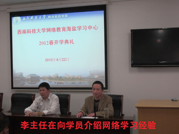4月22日下午2:00,36365线路检测中心入口网络教育海盐学习中心2012年春季新生开学典礼在海盐电大531多媒体教室举行。海盐电大书记周建康、教务主任李东山、班主任盛谨发、2012春季各专业新生出席了开学典礼。