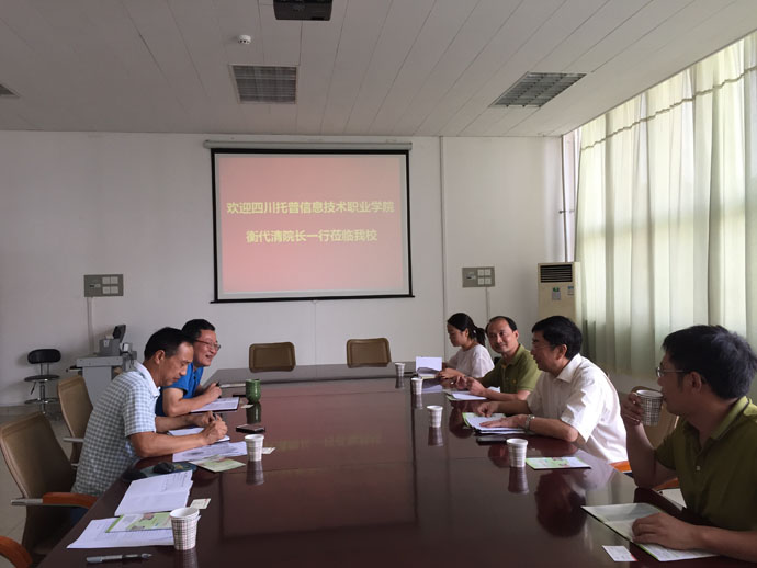 8月13日,四川托普信息技术职业学院院长衡代清一行来成网学院就自学考试联合办学事宜进行交流洽谈。学校校长助理、成网学院院长王营池对衡院长一行的到来表示热烈欢迎,并在成网学院四楼会议室举行了座谈。