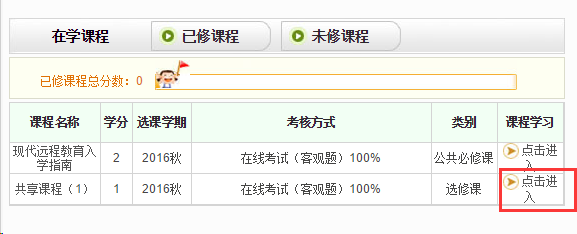 1、学生登录到网院工作室中,点击进入课程