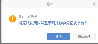 3、选择跳过此步进入以下提示,确认跳过后系统自动生成账号并进入小学分平台。