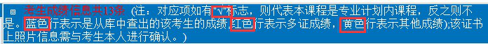 特别提醒:考生统考成绩背景色为