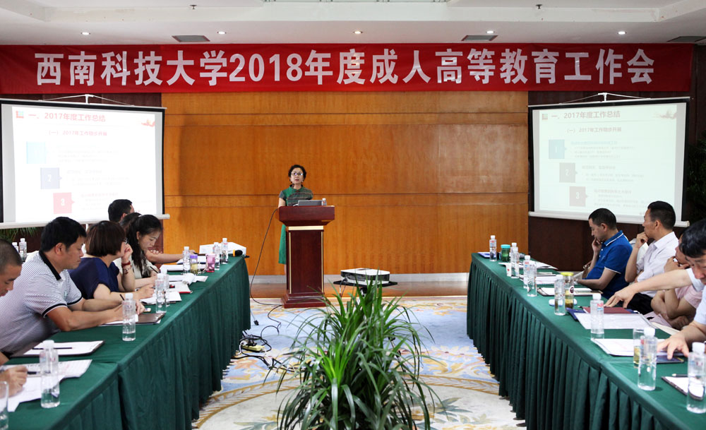36365官网2018年度成人高等教育工作会5月30日在眉山市召开。成人高等教育校外教学点、函授站、校内相关教学学院及成人教育学院相关人员参加会议。成教科科长李青主持会议。