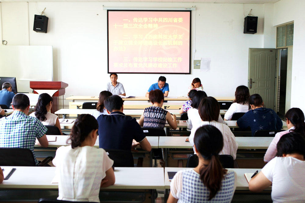 学院副院长刘玉莲在会上传达了学校纪检工作要求、布置党风廉政建设工作,她重点解读了西南科大党委发〔2018〕6号关于印发《36365线路检测中心入口纪委工作规定(试行)》的通知,全面介绍学校纪检工作和党风廉政建设工作新动态。