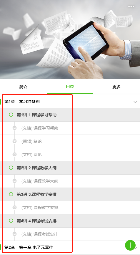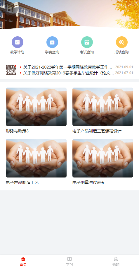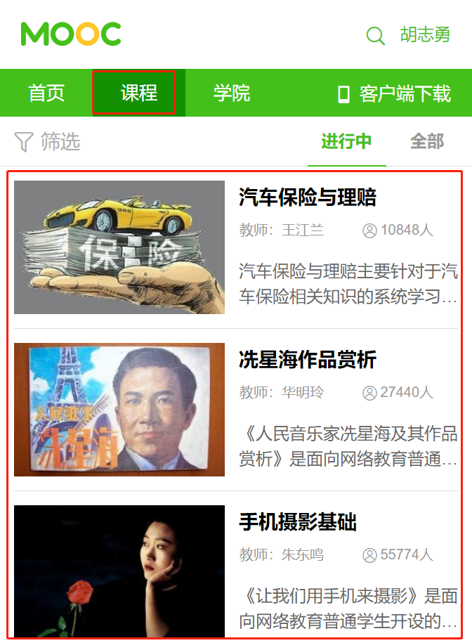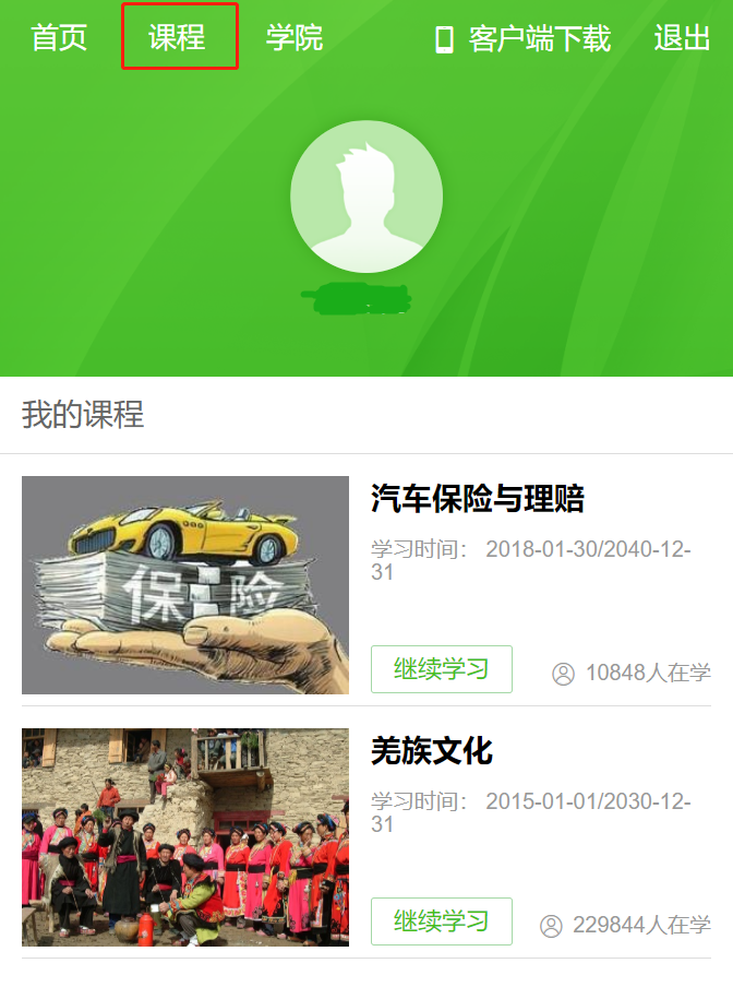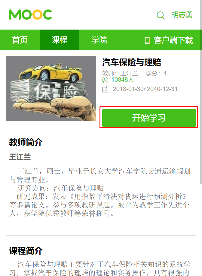 点击“学习”菜单进入当前学期课程,点击课程图片进入课程学习页面,即可进行如下学习: