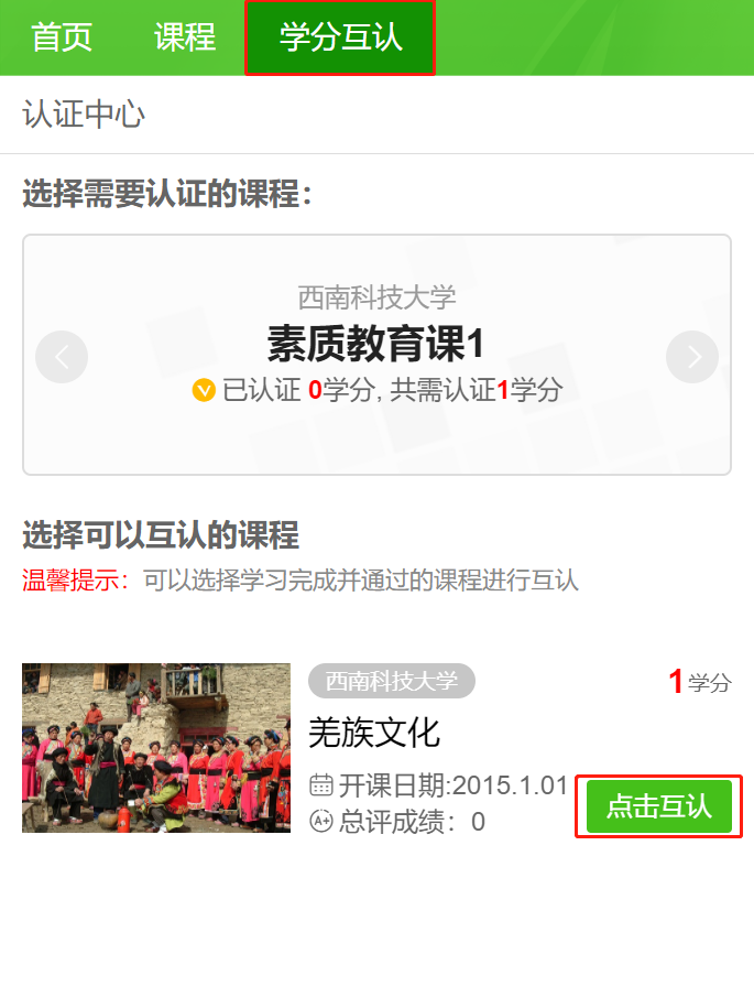 微信移动端素质教育课学习功能已开通,“学分互认”功能也已上线。