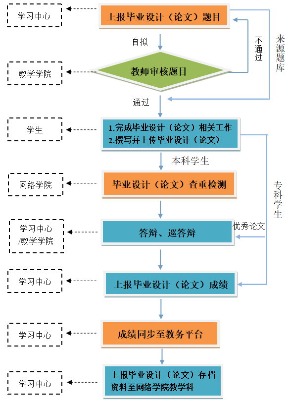 2.学生上传毕业设计(论文)后,通过网络学院毕业设计(论文)查重检测的,学习中心再组织学生进行答辩。(专科学生不要求) |