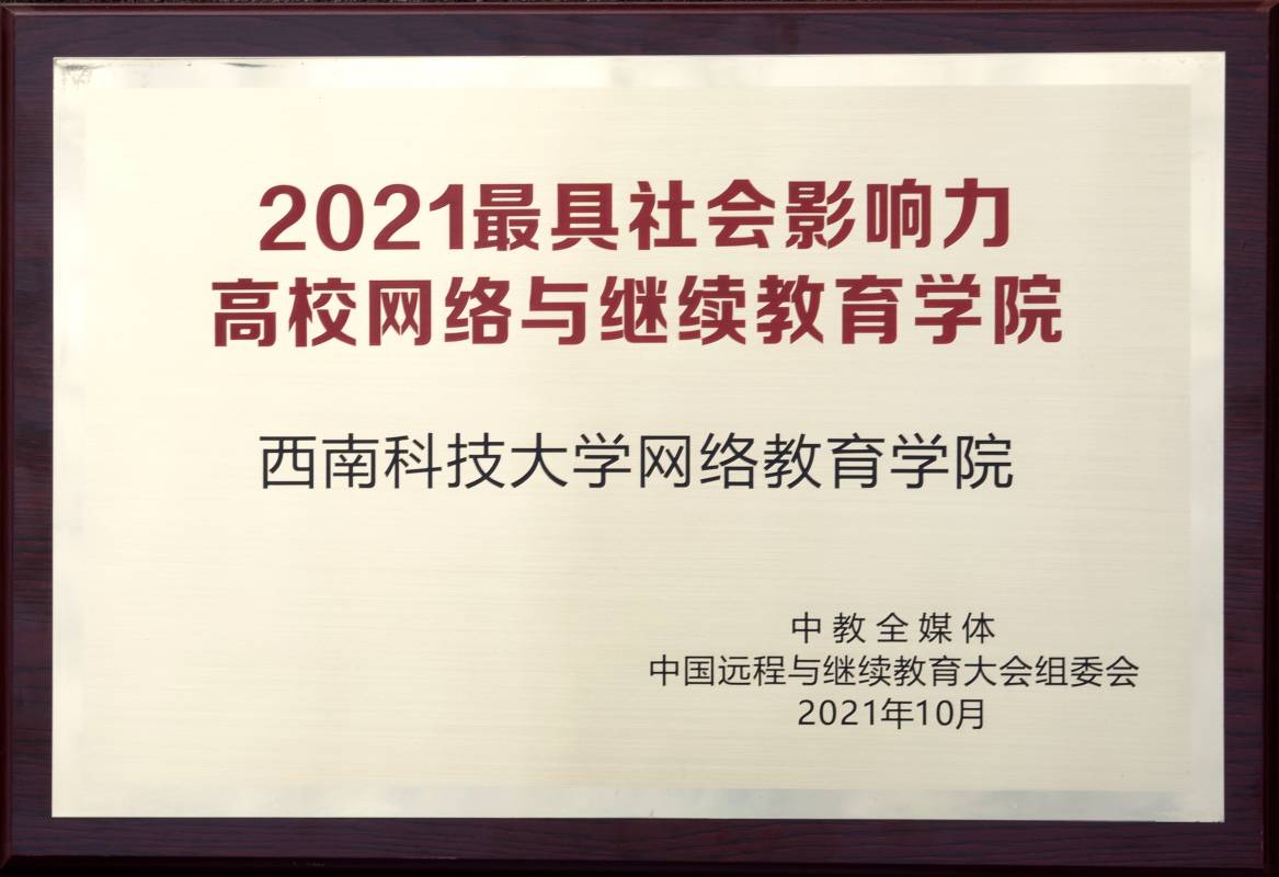 大会评选出2021中国最具社会影响力院校,36365官网网络教育学院获评“2021最具社会影响力高校网络与36365线路检测中心入口”。这是自2015年以来,36365官网网络教育学院连续七年获此殊荣。