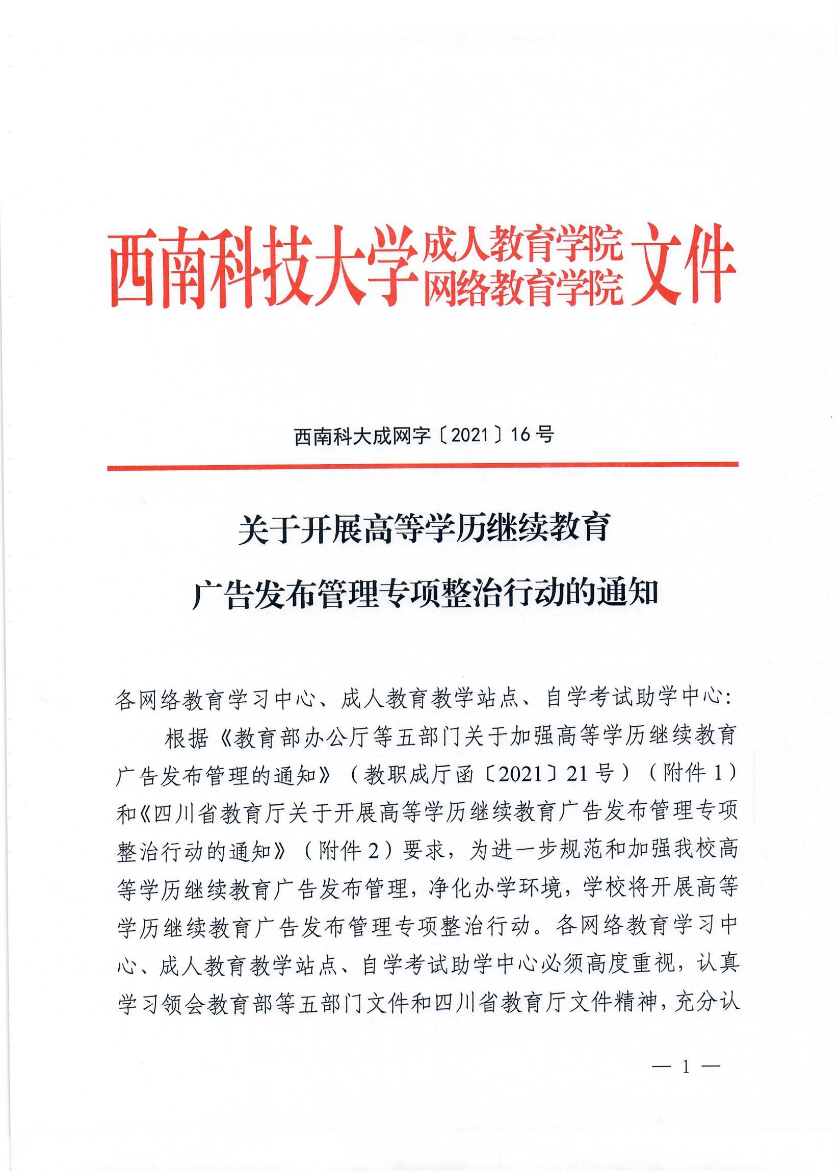 附件2:四川省教育厅关于开展高等学历继续教育广告发布管理专项整治行动的通知