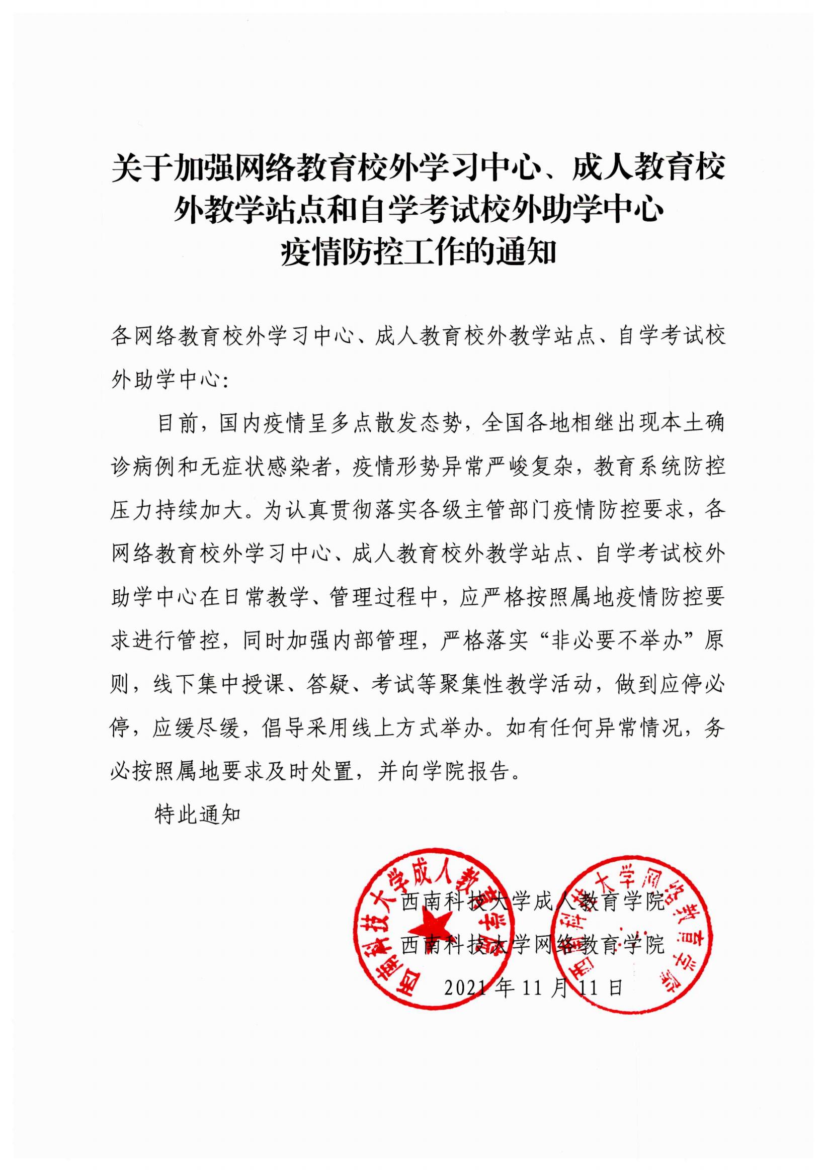 关于加强网络教育校外学习中心、成人教育校外教学站点和自学考试校外助学中心疫情防控工作的通知