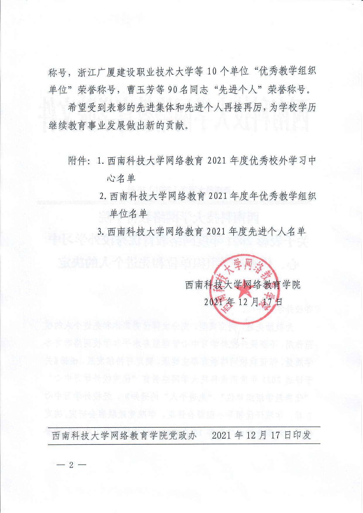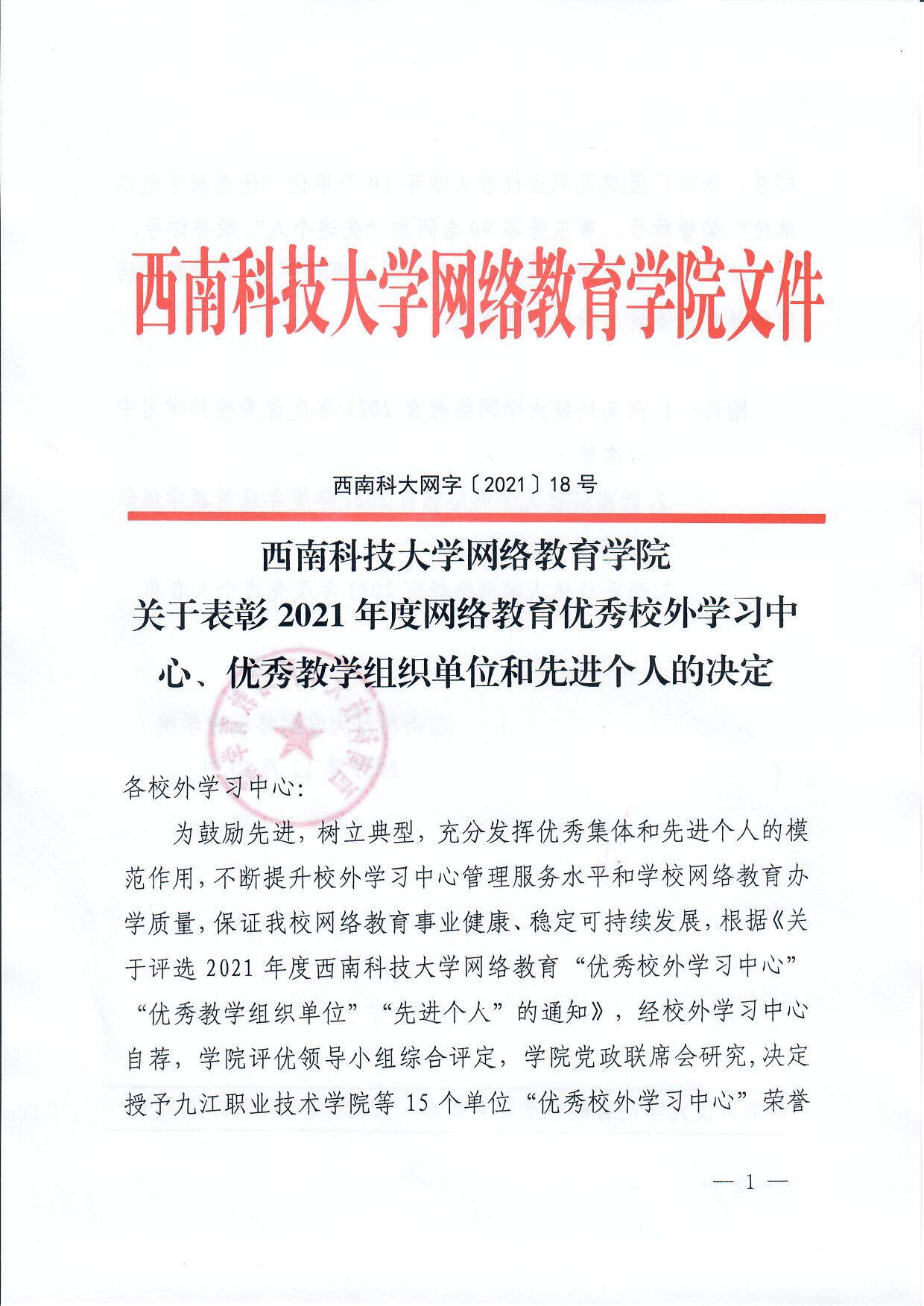 36365线路检测中心入口网络教育学院关于表彰2021年度网络教育优秀校外学习中心、优秀教学组织单位、先进个人的决定