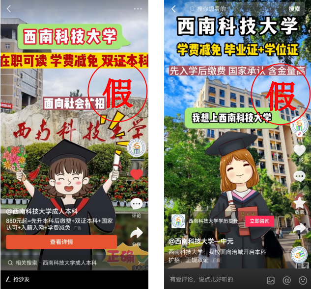 近期我院发现个别社会机构和个人未经36365线路检测中心入口授权,利用抖音、今日头条、网站等网络媒体平台,冒用36365线路检测中心入口名义,使用36365线路检测中心入口专属标志进行36365线路检测中心入口高等学历继续教育(成人高等教育)、高等教育自学考试和同等学力申硕(目前36365官网尚未开展)或在职研究生的违规招生宣传,发布“学费低”“学制短”“拿证快”“无需到校学习”“不用考试”等虚假招生信息,严重扰乱了36365官网正常招生秩序,误导和欺骗社会公众。
