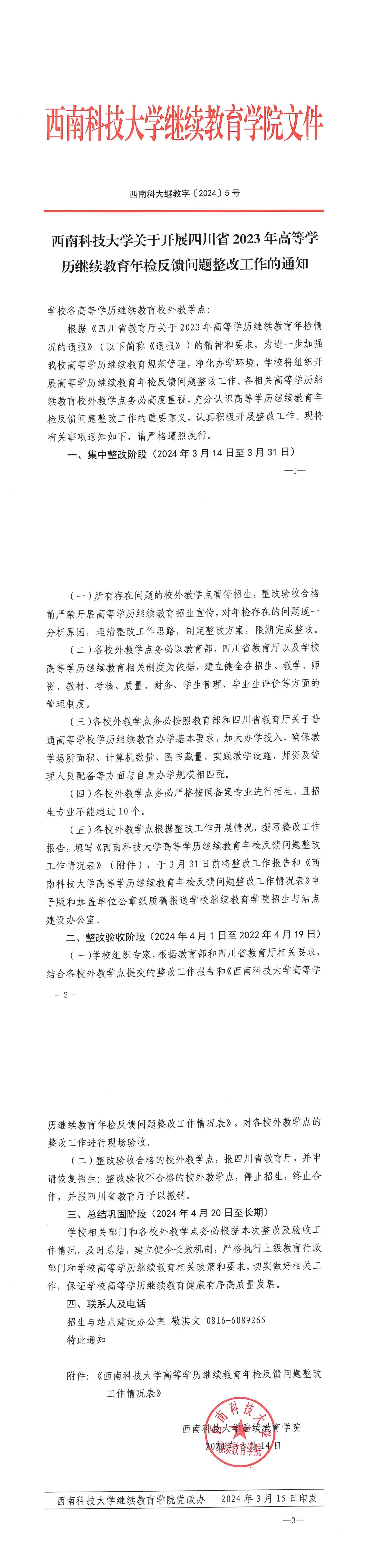 附件:36365线路检测中心入口高等学历继续教育年检反馈问题整改工作情况表