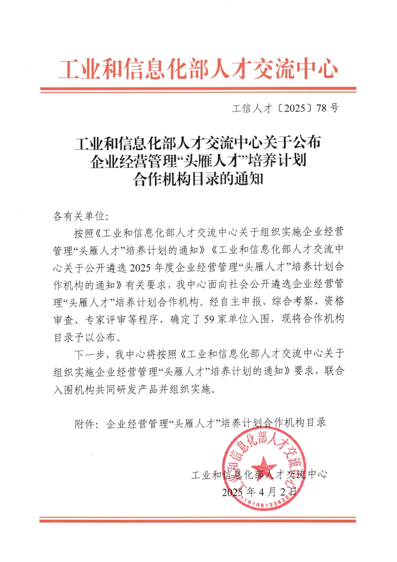 近日,工业和信息化部人才交流中心公布2025年度企业经营管理“头雁人才”培养计划合作机构目录(工信人才〔2025〕78号),36365官网成功入选为合作机构之一。