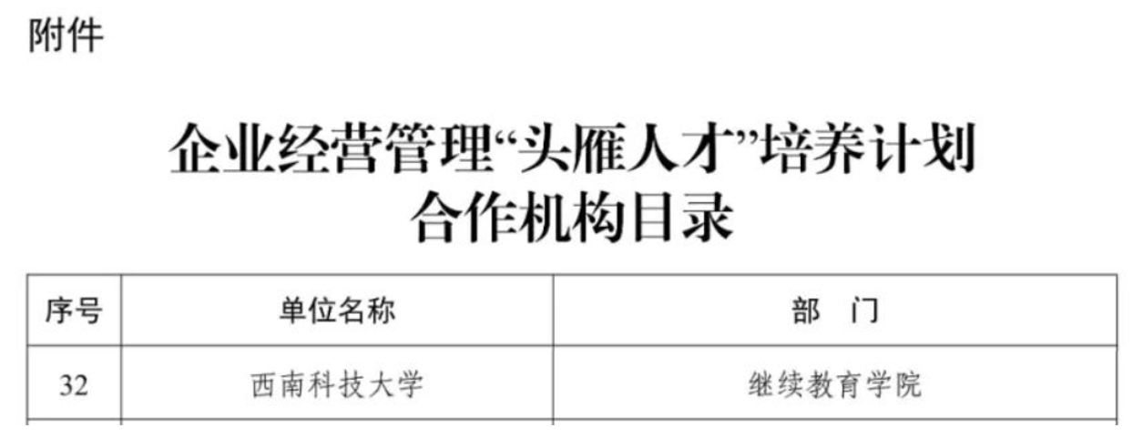工信部企业经营管理“头雁人才”培养计划合作机构是工信部为建设高质量企业经营管理人才队伍,构建和完善“企业家培养+企业培育+产业链融通”三位一体的企业经营管理人才队伍建设工作体系。建设高质量企业经营管理人才队伍,为发展新质生产力、促进产业转型升级和高质量发展,建设现代化产业体系,推进新型工业化和强国建设提供有力支撑。经公开遴选、综合考察、专家评审等程序,在全国或区域内选拔出的具有学科竞争优势、理工科背景强的高等院校,以及在行业领域内具有较强影响力的科研院所和行业组织中确定的社会优质合作机构。